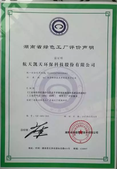航天凯天环保将以此为契机,以打造环保装备绿色制造典范为己任,努力提高绿色制造水平,提升产业竞争力,带动环保装备绿色制造快速发展,为“中国制造2025”和工业绿色发展作出应有的贡献!